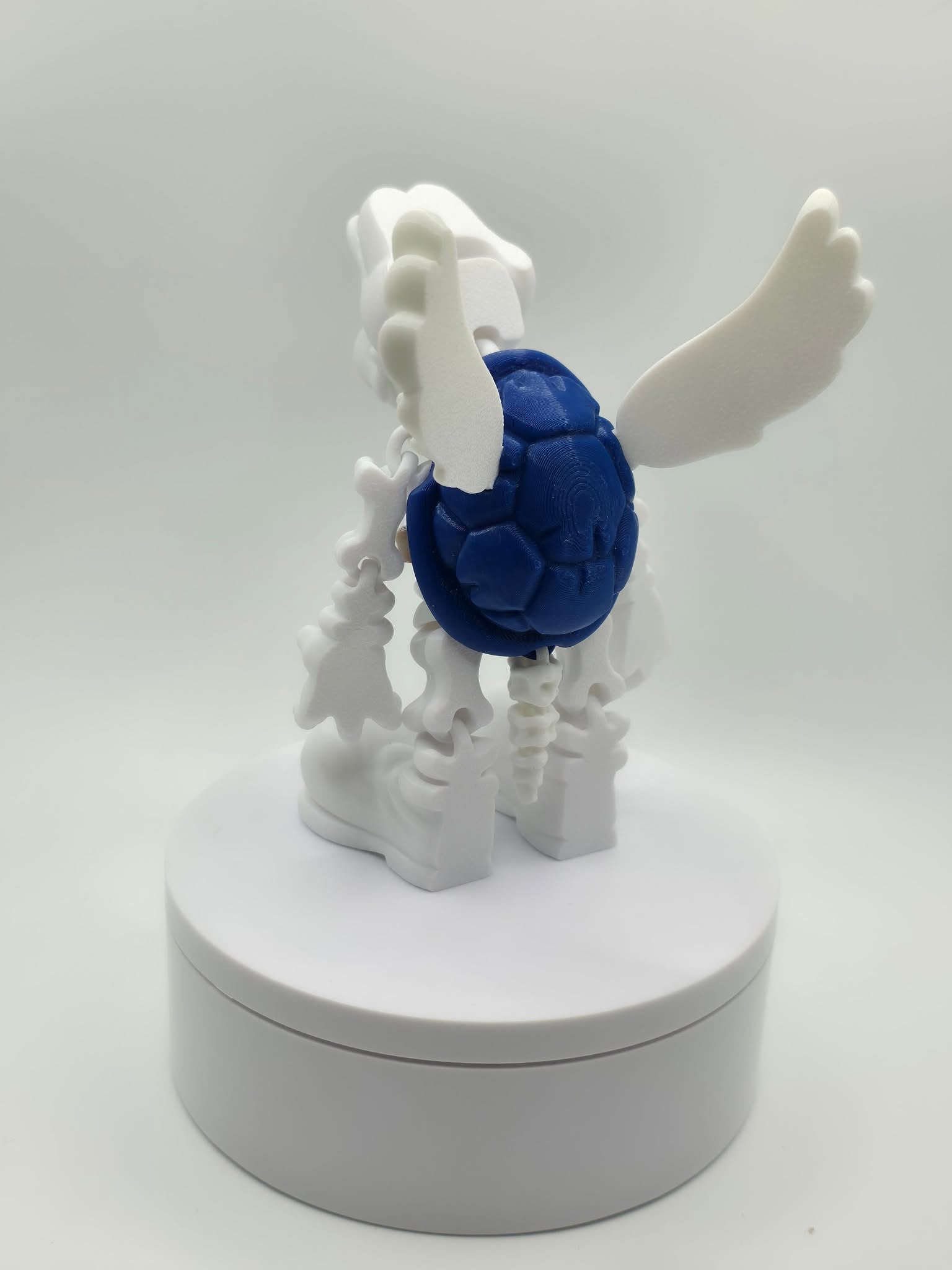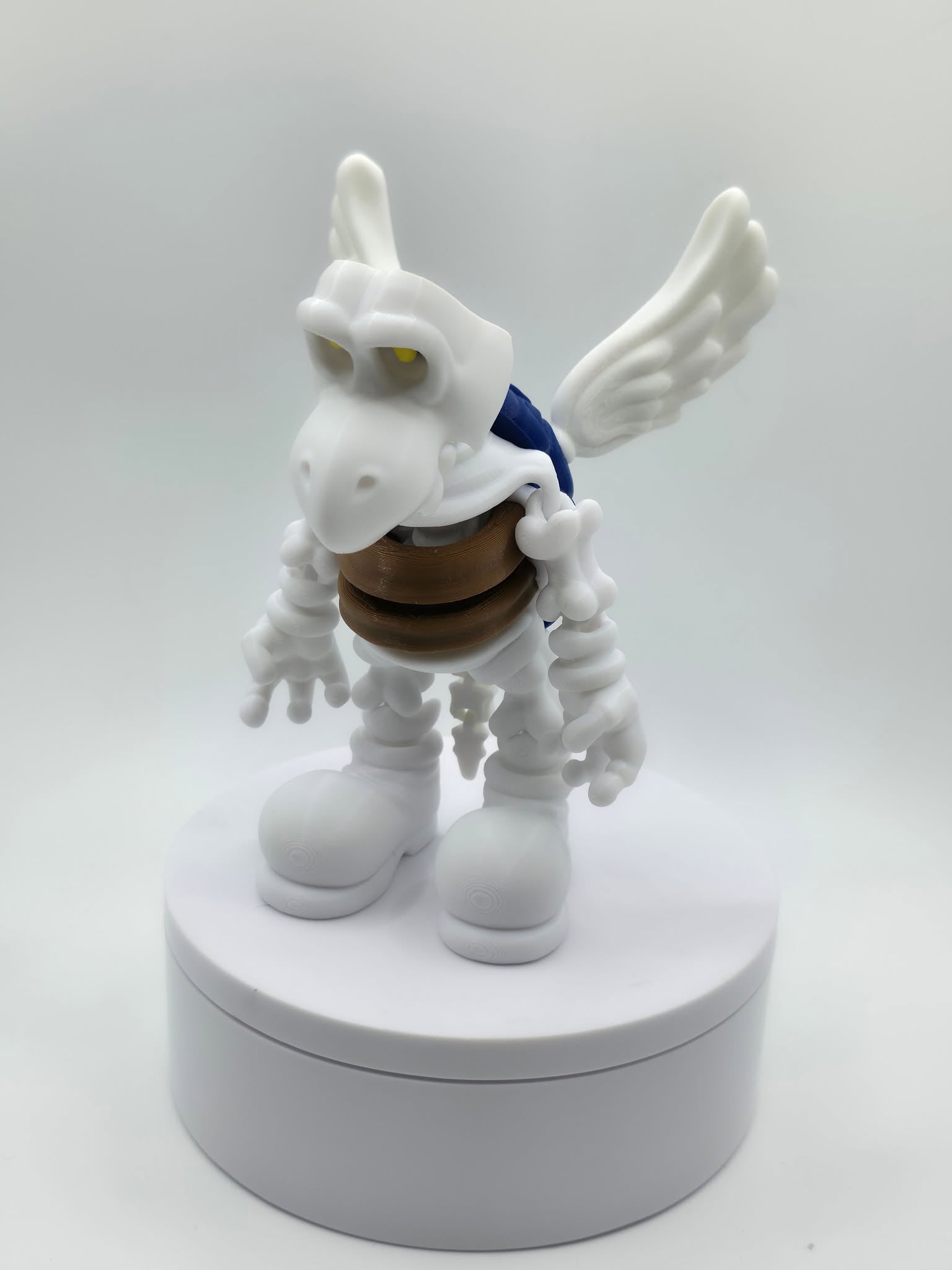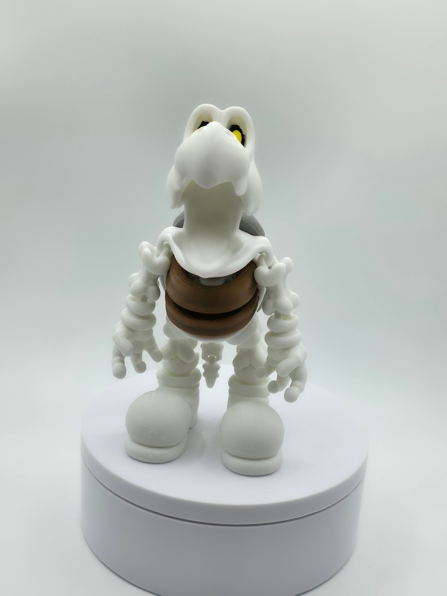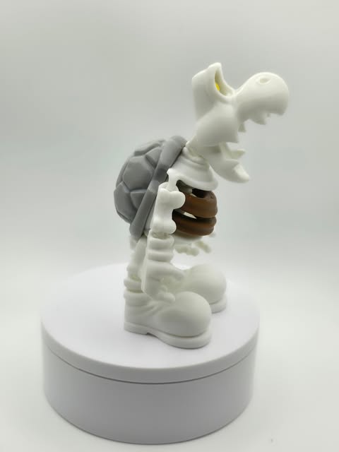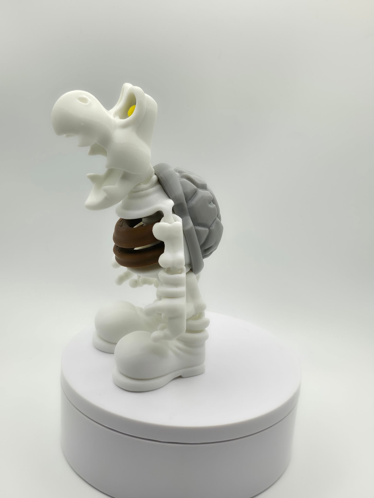 A 3D-printed Koopa skeleton model features detailed bones, including the shell, limbs, and skull. The shell’s ridges and shape are faithfully recreated, while the ribs and spine are designed to look skeletal. This model gives a unique, skeletal twist to the classic Koopa character.